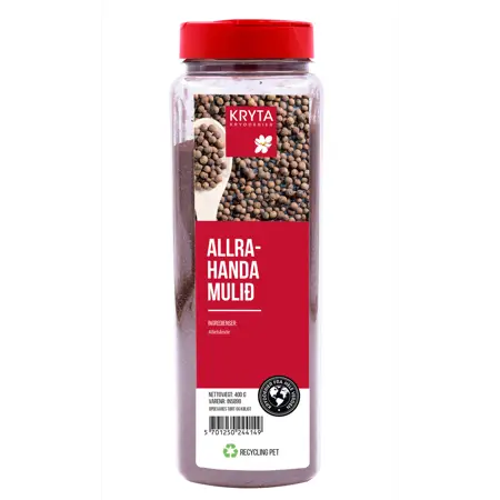 Allrahanda er krydd sem bragðast eins og sambland af kardimommu, kanil, negul, muskat og engifer - þaðan kemur nafnið. Allrahanda dregur fram bragðið af öðru kryddi sem það er notað með. Kryddið er framleitt úr þurrkuðum berjum af tré sem heitir Pimenta. Þetta er því hrein kryddtegund en ekki kryddblanda. Kryta er danskt fyrirtæki sem var stofnað árið 1955. Það býður upp á fjölbreytt úrval af hreinum kryddum, kryddblöndum og heilum kryddum. Til að tryggja gæðin vinnur Kryta í nánu samstarfi við sína birgja og ferðast reglulega til að skoða ræktun og framleiðslu. Miklar kröfur eru gerðar til þess að vörur þeirra séu ræktaðar og meðhöndlaðar á réttan hátt og við réttar aðstæður til að ná fram sem bestum gæðum.