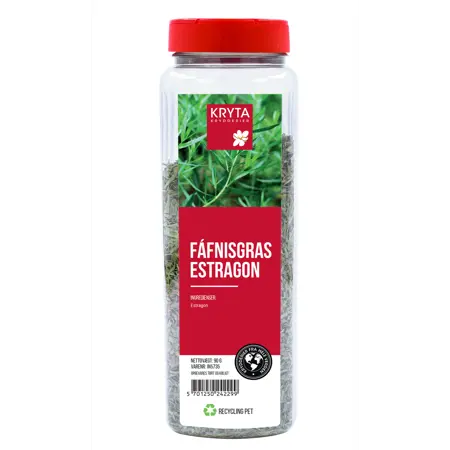 Fáfnisgras (Estragon) er fjölær jurt sem hefur arómatískt lakkrísbragð og getur dregið fram bragð af öðrum innihaldsefnum. Er notað í sósur (bearnaise sósu), dressingar og með léttari kjötréttum. Kryta er danskt fyrirtæki sem var stofnað árið 1955. Það býður upp á fjölbreytt úrval af hreinum kryddum, kryddblöndum og heilum kryddum. Til að tryggja gæðin vinnur Kryta í nánu samstarfi við sína birgja og ferðast reglulega til að skoða ræktun og framleiðslu. Miklar kröfur eru gerðar til þess að vörur þeirra séu ræktaðar og meðhöndlaðar á réttan hátt og við réttar aðstæður til að ná fram sem bestum gæðum.