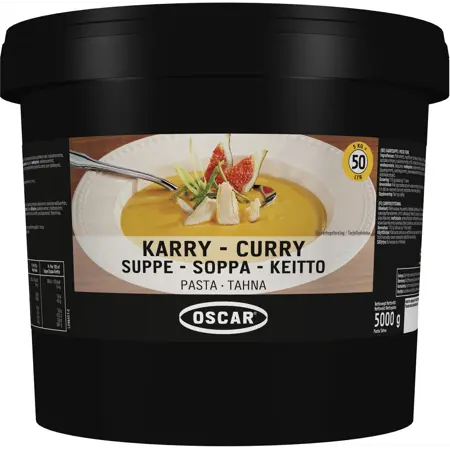 Mælt með 110 gr./ltr. Leysið upp í vatni og hrærið á meðan, látið sjóða í nokkrar mínútur. Það má skipta út einhverjum hluta af vatni með mjólk eða rjóma. Oscar Karrý súpuna má bera fram eins og hún er eða skreyta hana með smá rjóma eða sýrðum rjóma. Hana má líka nota beint út í ýmsa rétti.