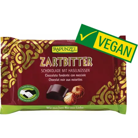Dökkt súkkulaði með heilum heslihnetum. Vegan.