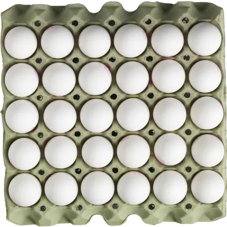 Fersk egg með skurn. Í hverjum kassa eru 8 bakkar með 30 stykkjum í, samtals 240 stk. Stærðin er blönduð M og þyngdin á eggjum er frá 53-63g