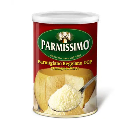 Rifinn parmesan í hæsta gæðaflokki. Pökkunin tryggir ferskleika. Dós með góðu plastloki sem viðheldur gæðum eftir opnun.