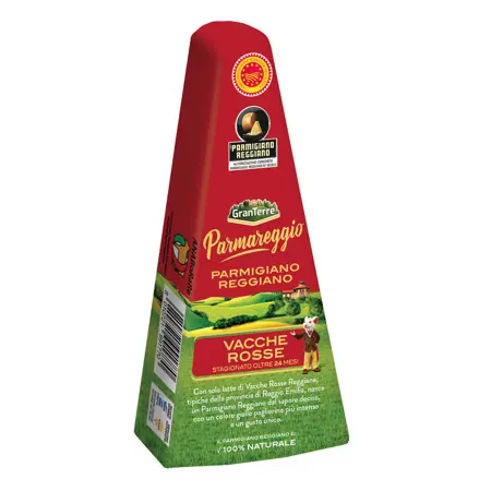Þessi 24 mánaða Parmesan ostur er einungis unnin úr mjólk frá Reggio Emilia, þar eru ræktaðar "Reggiane Rauða Kýr". Þessi ostur er einstakur á bragðið og gefur sterkan gulan lit og er bragðmikill. Ostur sem allir Parmesan unnendur elska.