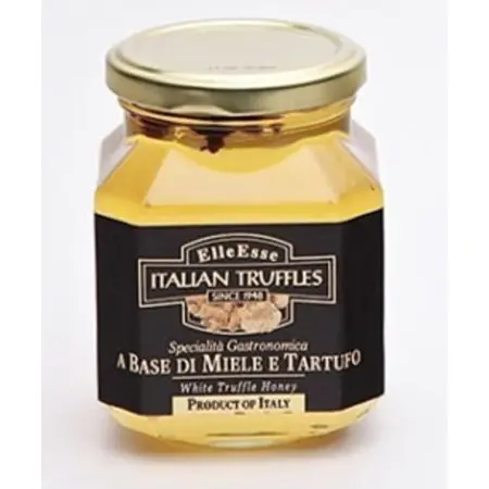 Hágæða akasíu hunang bragðbætt með þurrkuðum hvítum trufflum. Það passar vel með ferskum eða krydduðum osti sem og með ís. það má einnig nota til að bragðbæta sósur.