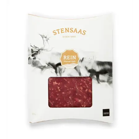 Hreindýrahakk 5 kg í kassa. Stensaas er fjölskyldufyrirtæki sem í margar kynslóðir hefur framleitt hreint og hollt hreindýrakjöt úr dýrum er lifa í ósnortnum fjöllum og heiðum í kringum Røros í Noregi. Dýrin eru úr hjörðum Sama sem ala dýrin eftir sínum aldagömlu 8 árstíða hefðum er byggja á náttúrulegum árstíðabundnum flutningi hreindýranna milli beitarlanda.