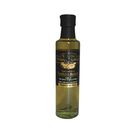 Fyrsta flokks extra virgin olífuolía sem inniheldur bæði trufflu safa og þurrkaðar trufflu agnir (White Spring Truffle & White Winter Truffle).
