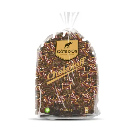 Fílakramellur þekkja allir enda eru þær ómótstæðilega góðar. Hin gómsæta saga Cote d’Or saga hófst 1883, þegar belgískur súkkulaðigerðamaður ferðaðist til Afríku til að leita að besta kakói í veröldinni. Afraksturinn þekkjum við öll í dag og er Cote d’Or stolt af því að vera opinber súkkulaðiframleiðandi belgísku konungsfjölskyldunnar. Innihaldsefni: Sykur, glúkósasíróp, kakómassi, pálmaolía, kakósmjör, mjólkurduft, mjólkursykur, fituskert kakó, ýruefni (sojalesitín, sólblómalesitín), salt, sýrustillir (natríumsítrat), bragðefni. Innflytjandi: Innnes ehf. Upprunaland: Belgía.