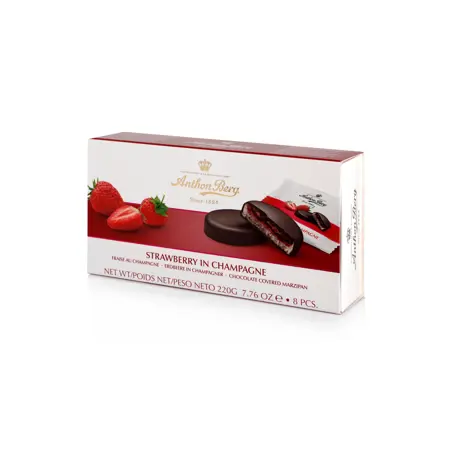 Marsipan tertur, jarðaber í kampavíni. 8 innpakkaðir molar í öskju