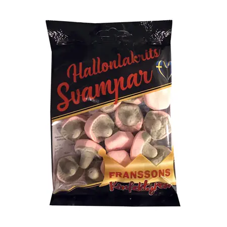 Hallonlakrits Svampar, hindberja og lakkrís sveppirnir sem hingað til hafa aðeins fengist í nammibarnum er nú fáanlegir í poka