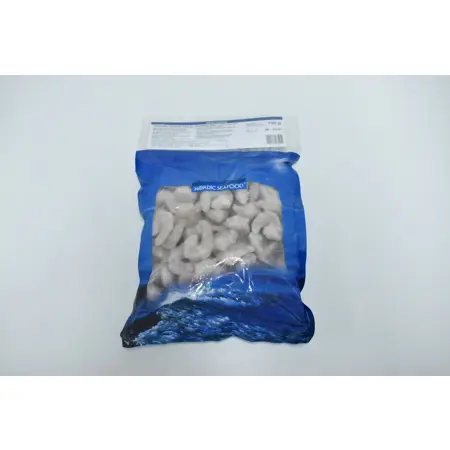 Skelflett Vannamei risarækja í stærðinni 26/30. Íshúðuð vara, net þyngd 750 g.
