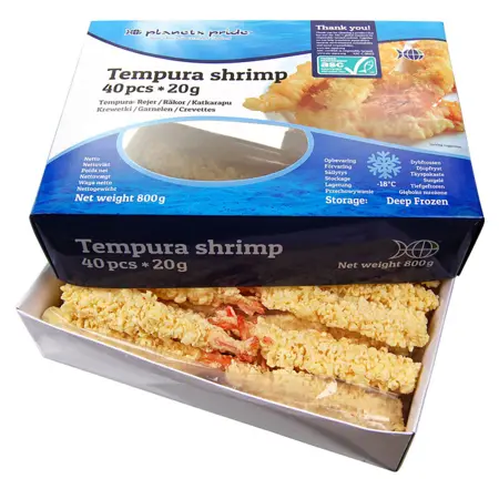 Tempura rækjur. 40 stk í pakkanum. Steikið í olíu við 170° þar til gullinbrúnt.