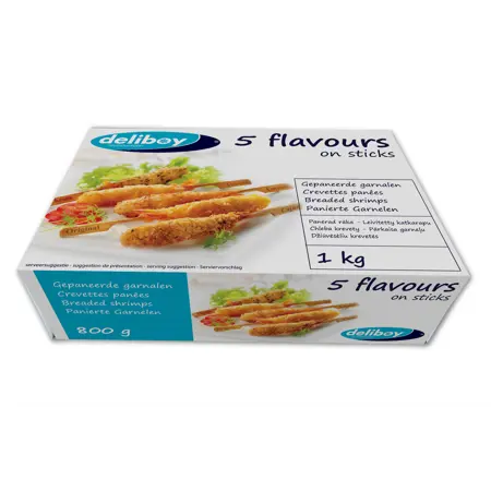 Rækjur í fimm bragðtegundum -Cajun - Almond - Herb and cheese - Coconut - Original. 50 stk í kílói. Þíðið vöruna í kæliskáp fyrir steikingu, þiðnar vörur skal steikja um neyta strax eftir að hún er þiðin. Vörur sem búið er að þíða má ekki frysta aftur. Má hita í ofni eða djúpsteikja. Djúpsteikið í 3 mínútur við 175 gráðu hita eða hitið í ofni í 8-10 mínútur við 180 gráður.