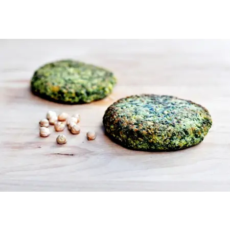 Afþýðið. Hitið svo í ofni í 10 mín við 160°. Má einnig fara frosið í ofn í 15 mín við 160° brokkólíborgari með kjúklingabaunum og hvítlauk. tilvalið að bera fram með Sólskinssósu frá Móður Náttúru.