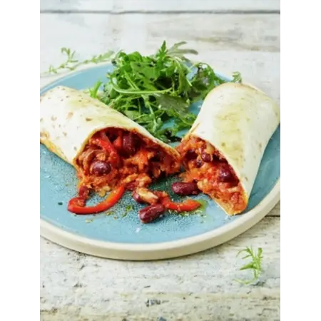 Afþýðið, hitið svo í ofni í um 10-15 mín við 160°. Raðast vel í gastro bakka. Ljúffengar tortillur með linsubaunum, sætum kartöflum og kóríander. Tilvalið að bera fram með hýðishrísgrjónum og Sólskinssósu frá Móður Náttúru.