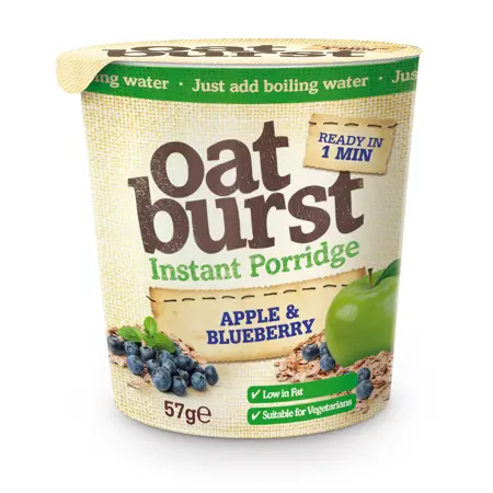 Oatburst hafragrautarnir eru lágir í fitu og innihalda engin aukaefni né litarefni. Oatburst hafragrautarnir henta grænmetisætum. Bættu heitu vatni út í málið og grauturinn er tilbúinn á einni mínútu.