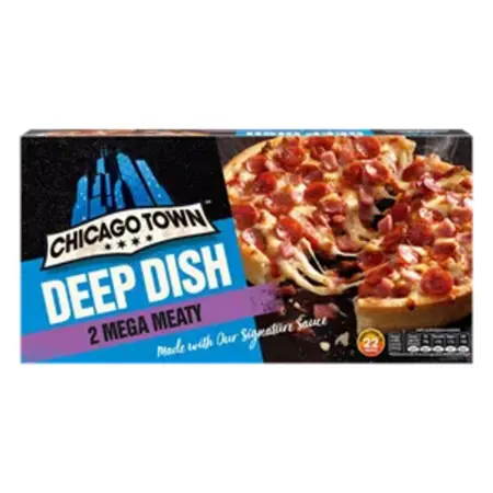 Djúp pönnupizza, sneisafull af okkar ljúffengu tómatasósu og fullt af pepperoni, pylsukurli og skinku og drekkhlaðin mozzarella osti. Hitið ofininn í 190°C og setjið pizzuna frosna inn í ofninn. Bakið í 20-22 mínútur. Einnig er hægt að hita þessa pizzu í örbylgjuofni í 3 mínútur á 800-900W.