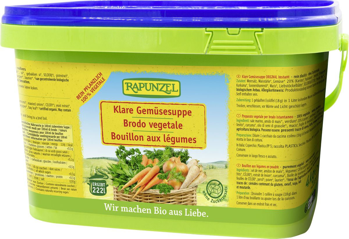 Gulltóna jurtakraftur með steinselju, kúmen, gulrótum, lauk, sellerý, kúrkumin ásamt fleiri jurtum. 4kg fata gefur 222 skammta ef miðað er við 18g í 1l af vökva.